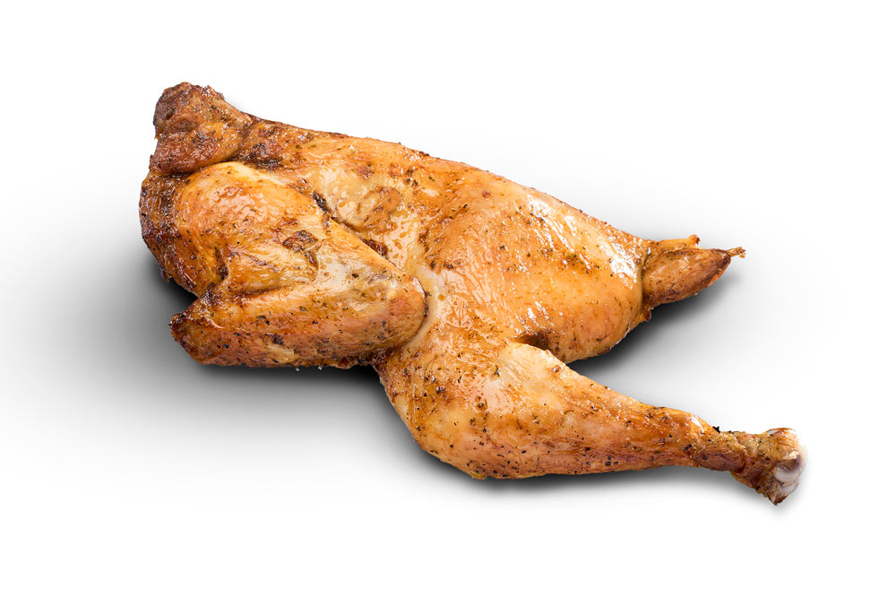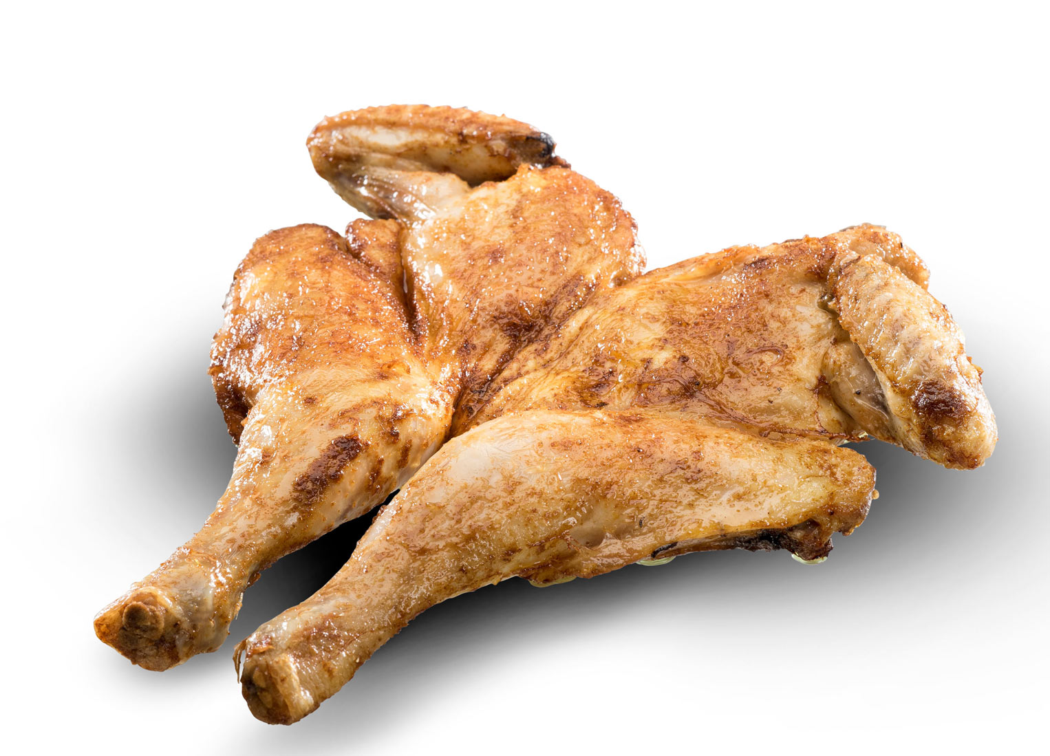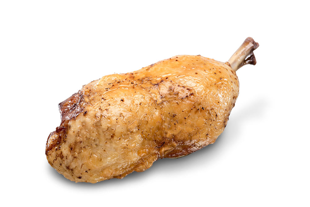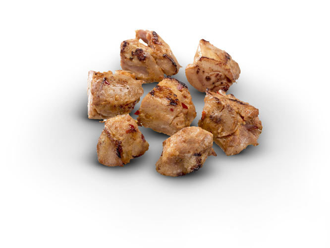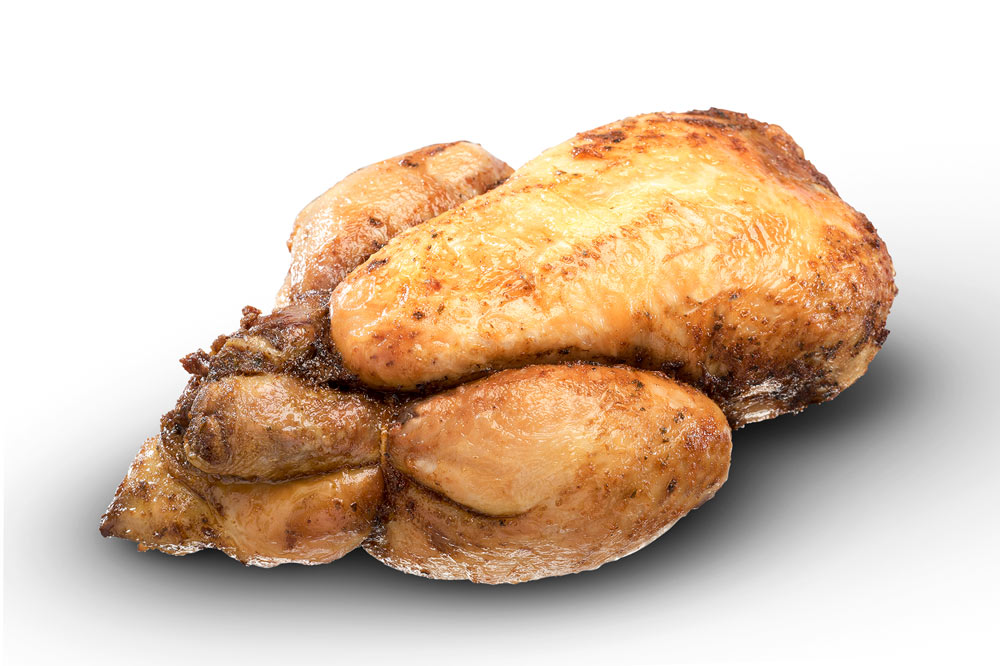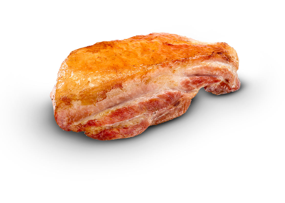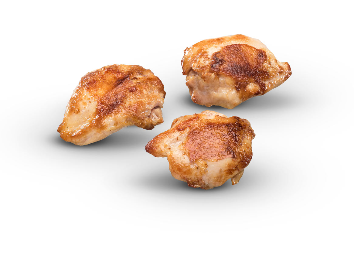 Geroosterde kipdij met vel, bereid. Vacuüm, 10 x 2 x 80 gram, per stuk.