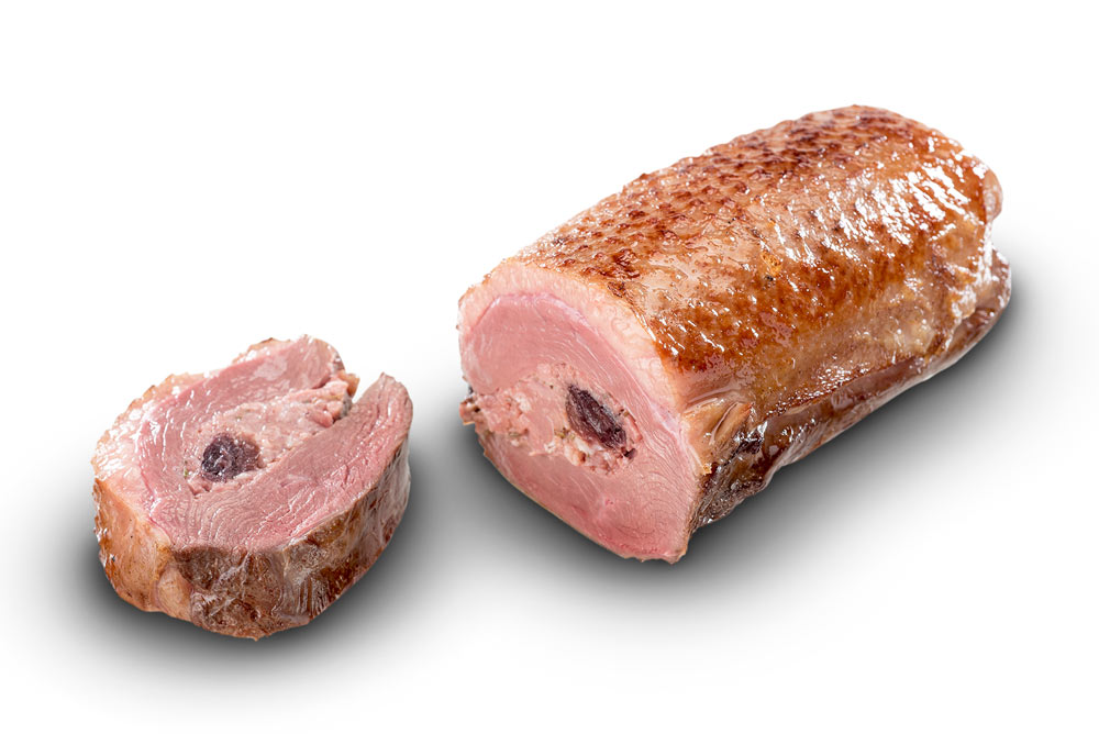 Roulleau van eend, Wildfarce en cranberries. Vacuüm, ca. 400 gram.