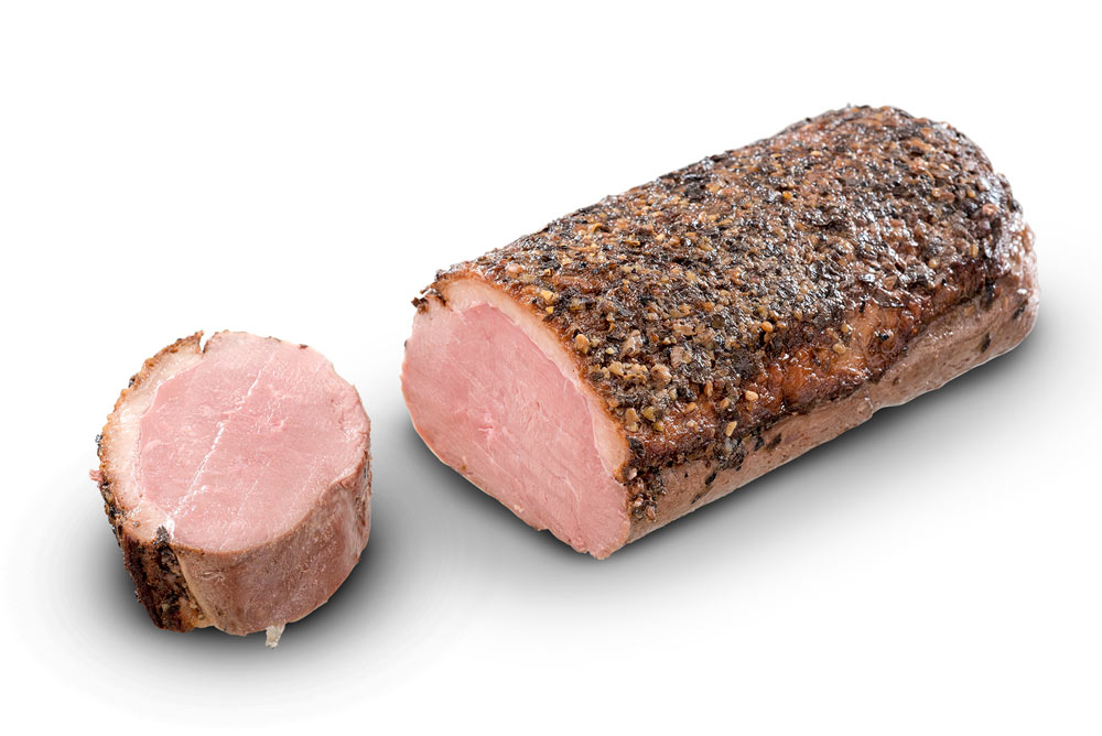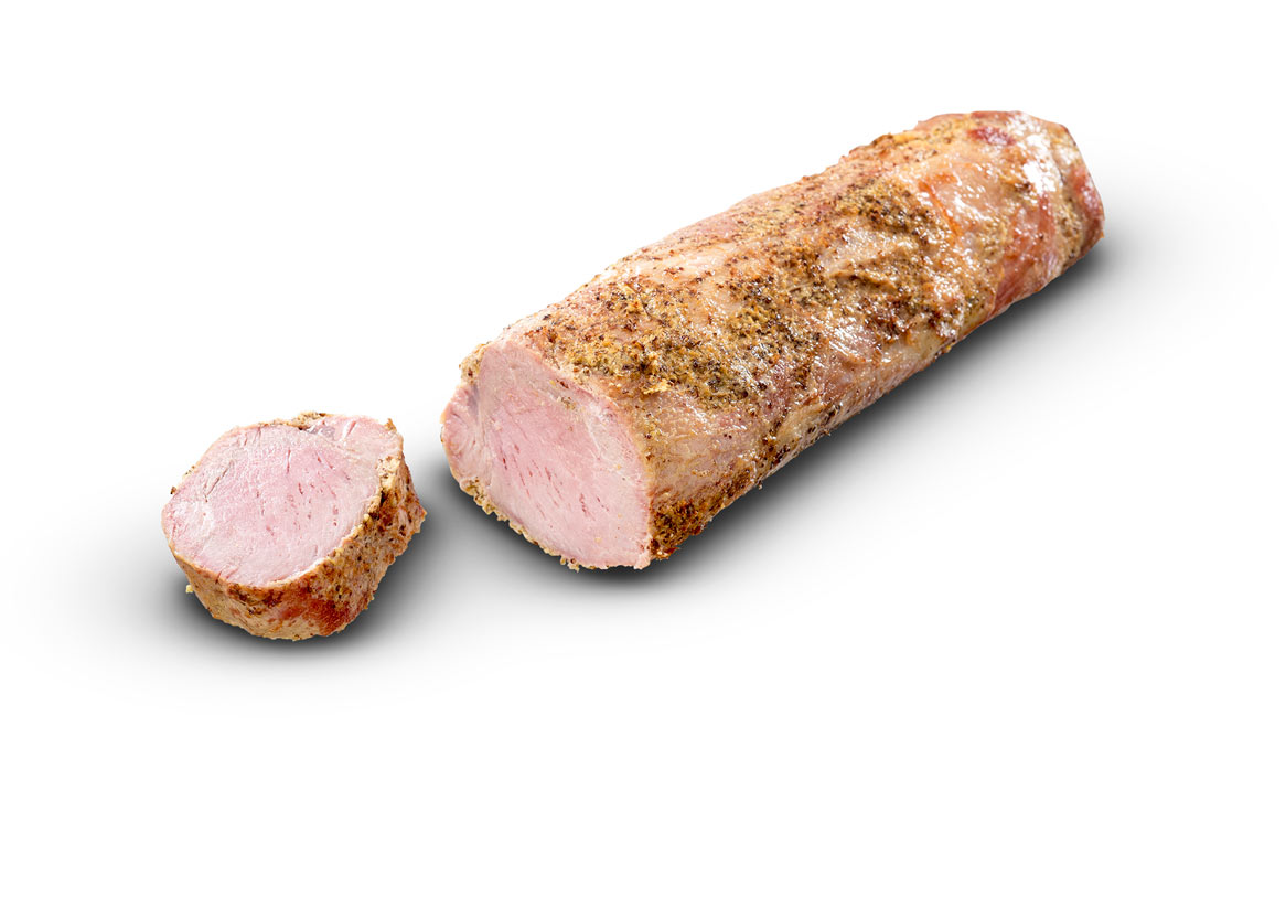 Speenvarkenfilets, licht gepekeld en gerookt. Vacuüm, 500 gram.