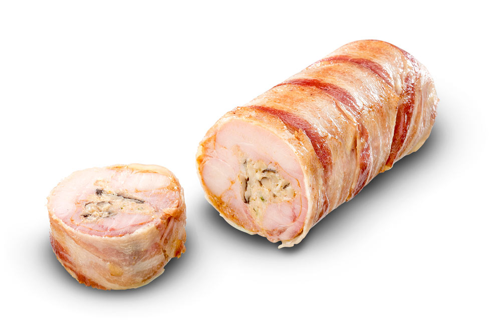 hoenderrouleau met paddestoelen farce. Vacuüm, ca. 400 gram.
