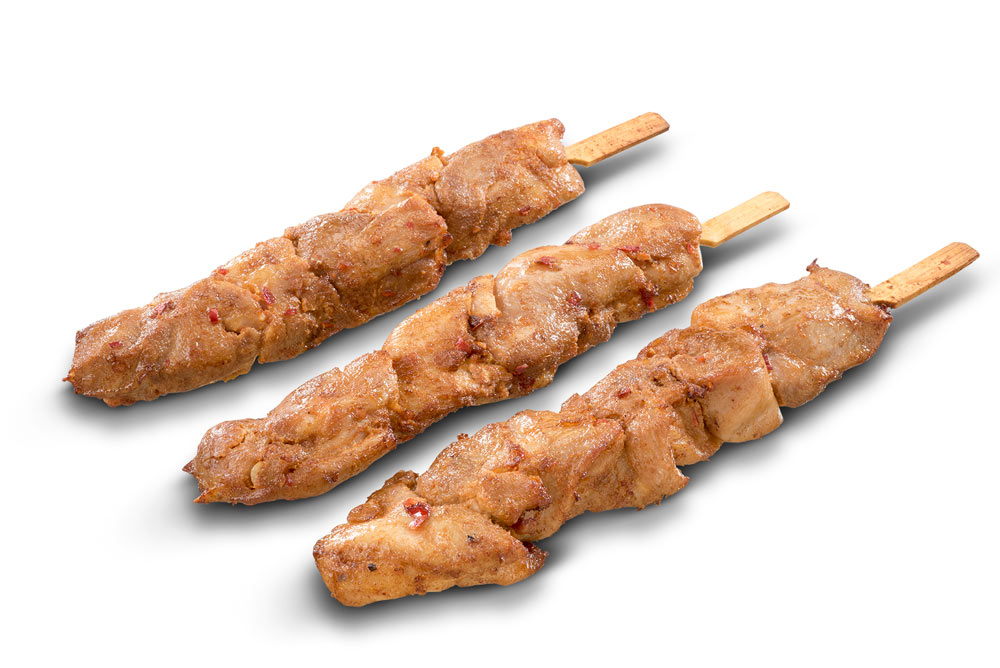 Kipdijvlees huismarinade, aan spies geregen, sous-vide bereid. Vacuüm, 10 x 100 gram / 5 x 200 gram / 5 x 300 gram.
