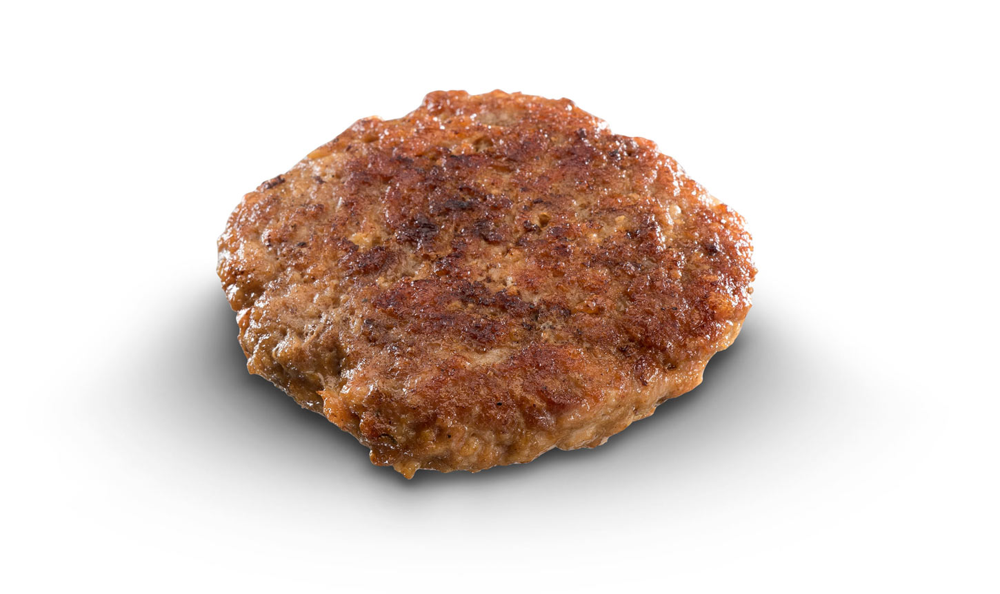 Hamburger van grain fed iers rund, medium cuisson. Vacuüm 10 x 1 x 90 gram, per stuk / 10 x 1 x 150 gram, per stuk