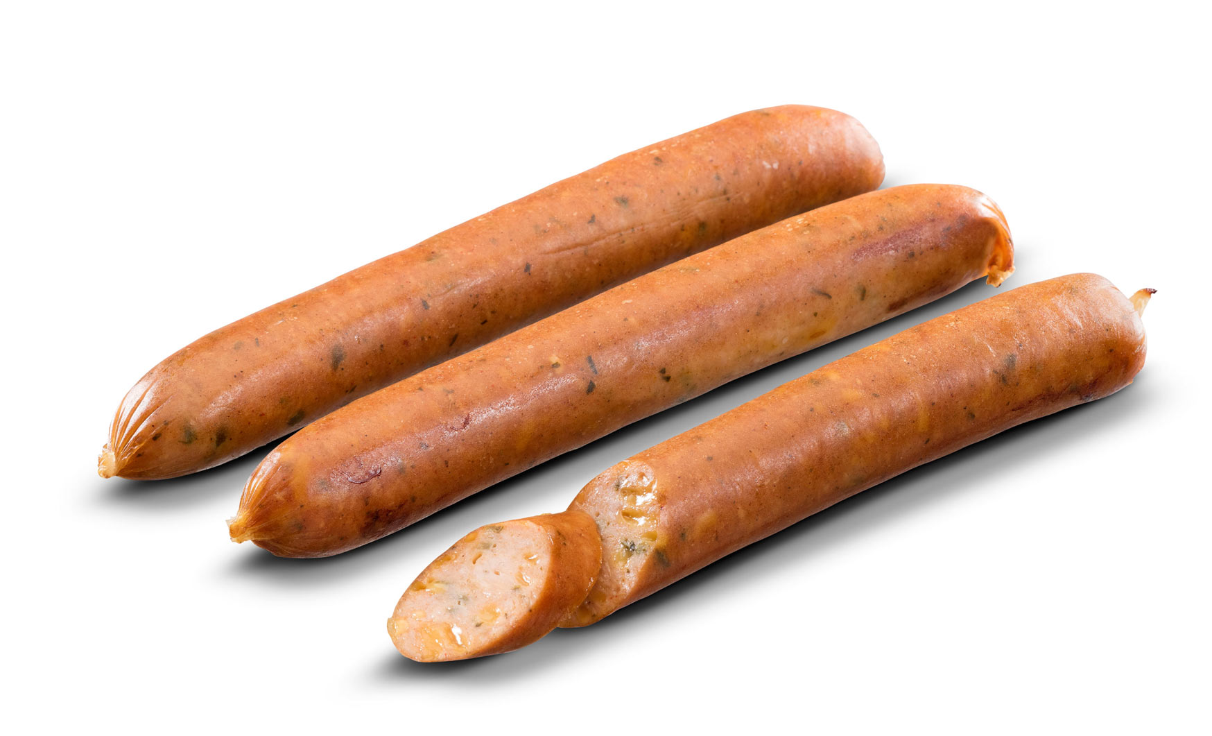 Kiphotdog, jalapenopeper, chedar, grofgehakt. Vacuüm, 10 x 10 x 50 gram / 5 x 10 x 100 gram.